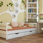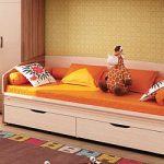 بالنسبة لغرفة الطفل ، من الأفضل تفضيل آلية قابلة للسحب أو السحب. لا تتطلب جهدا عند استخدام المقصورات. الحل المثالي - صناديق مع أدلة لا تعتمد على مواد التشطيب. حجم السرير هو الجانب الأكثر أهمية.