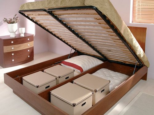 السرير مع صناديق التخزين في مثل هذه الحالات سوف يكون ضمانا للوظائف الداخلية.