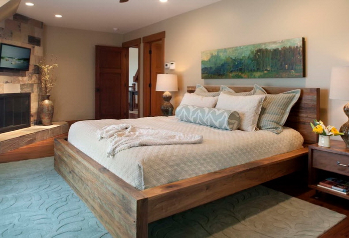 أسرة خشبية في غرفة النوم الداخلية - 50 صورة الأفكار: