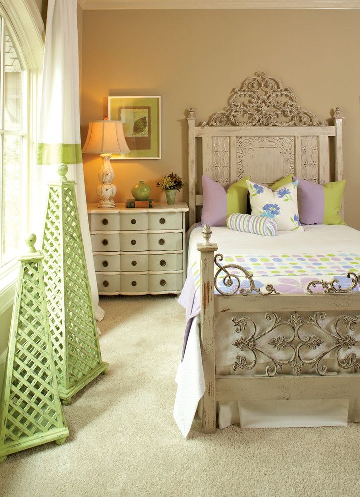 يتكون السرير المصمم على طراز بروفانس من الخشب الفاتح ، مثل البتولا أو الرماد.