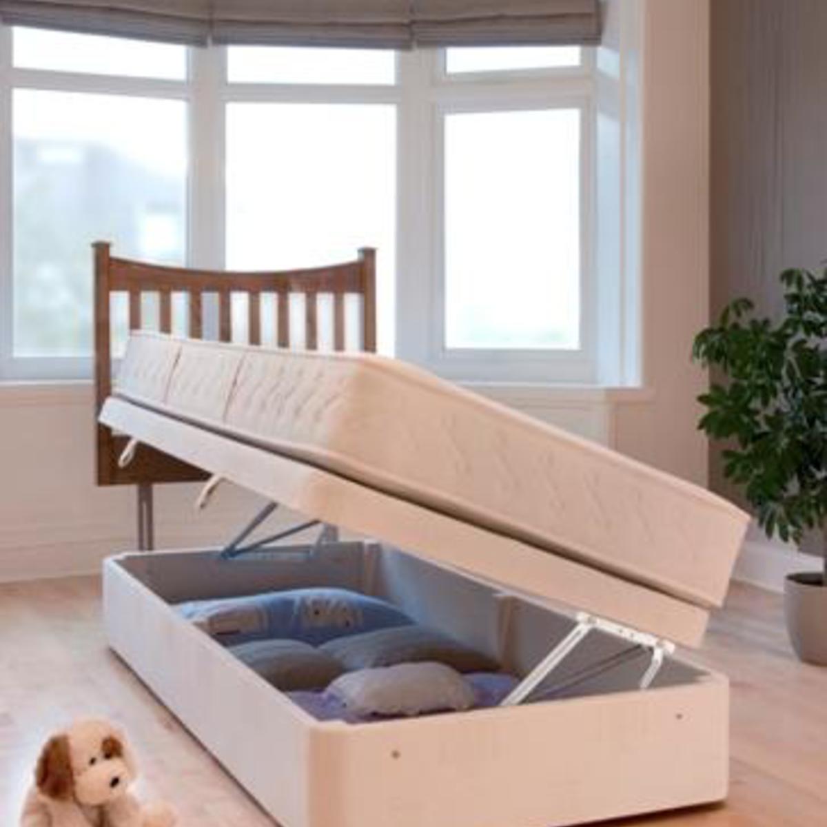 تعد الأسرّة المفردة التي بها صندوق على جهاز الرفع مثالية للغرف ذات المساحة الصغيرة أو في الأماكن التي يكون من غير المناسب فيها فتح الأدراج بسبب عدم توفر المساحة.