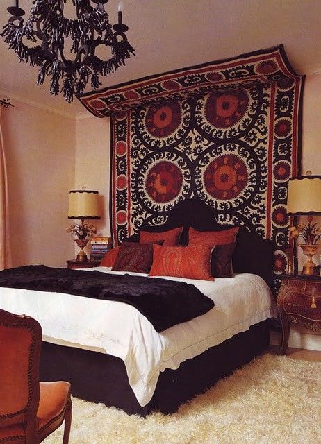 اللوح الأمامي على الطراز العرقي لخلق مزاج خاص في غرفة النوم