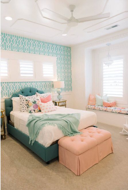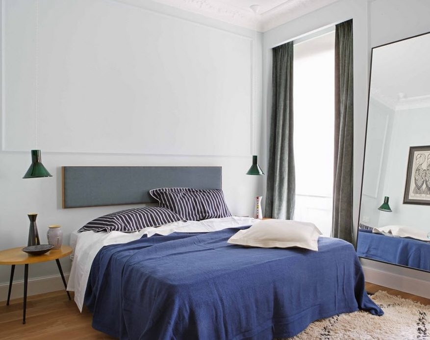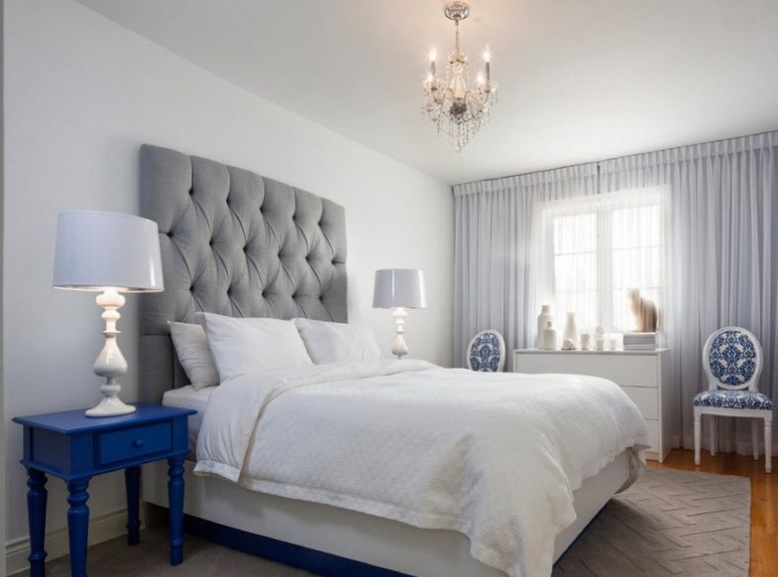 اللون الأزرق لرأس السرير مناسب لضمان التناسق في الحمام وإضافة الوضوح والخفة ، وهو أمر ضروري بشكل خاص قبل وقت النوم.