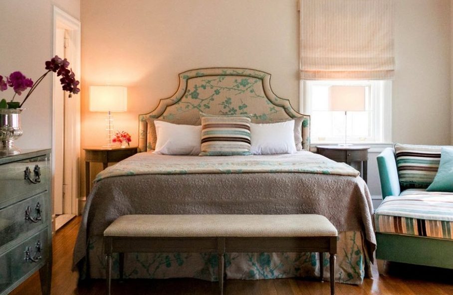 تعتبر اللوح الأمامي الناعم مع الزهور خيارًا مثيرًا للاهتمام لتزيين السرير في غرفة النوم
