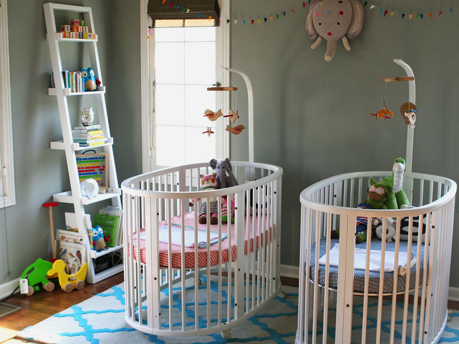 أسرة بيضاوية للتوائم في غرفة الأطفال