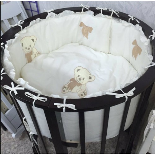 دائرية بيضاء تحول سرير الصنوبر مع وسائد ناعمة لضمان سلامة الطفل