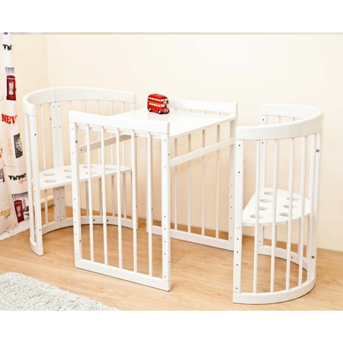 - بعد التعيين المباشر ، يمكن استخدام سرير الأطفال كألعاب للأطفال وكذلك طاولة مع كراسي / كراسي. في النموذج الأول ، يكون هذا التحول عديم الفائدة تمامًا. في العمر الذي يحتاج فيه الطفل إلى روضة أطفال ، لا يزال بحاجة إلى سرير أطفال. إن زرع طفل سهل اللعب - توجد هذه الوظيفة أيضًا على الأسرة العادية. لذلك ، لن يتم احتساب هذا الخيار لاستخدام محول بين الإيجابيات. هذه فضيلة ، لكنها ليست فريدة من نوعها. فيما يتعلق بالجدول مع الكراسي ، تتفق آراء أولياء الأمور للوقت منذ ظهوره على أسرّة الأطفال في السوق في أنه لا يتم استخدام المنتج في هذا النموذج. من المحتمل ، يمكن تحويل النموذج ، لكن مثل هذه "المجموعة" ليست ملائمة للطفل لاستخدامها.