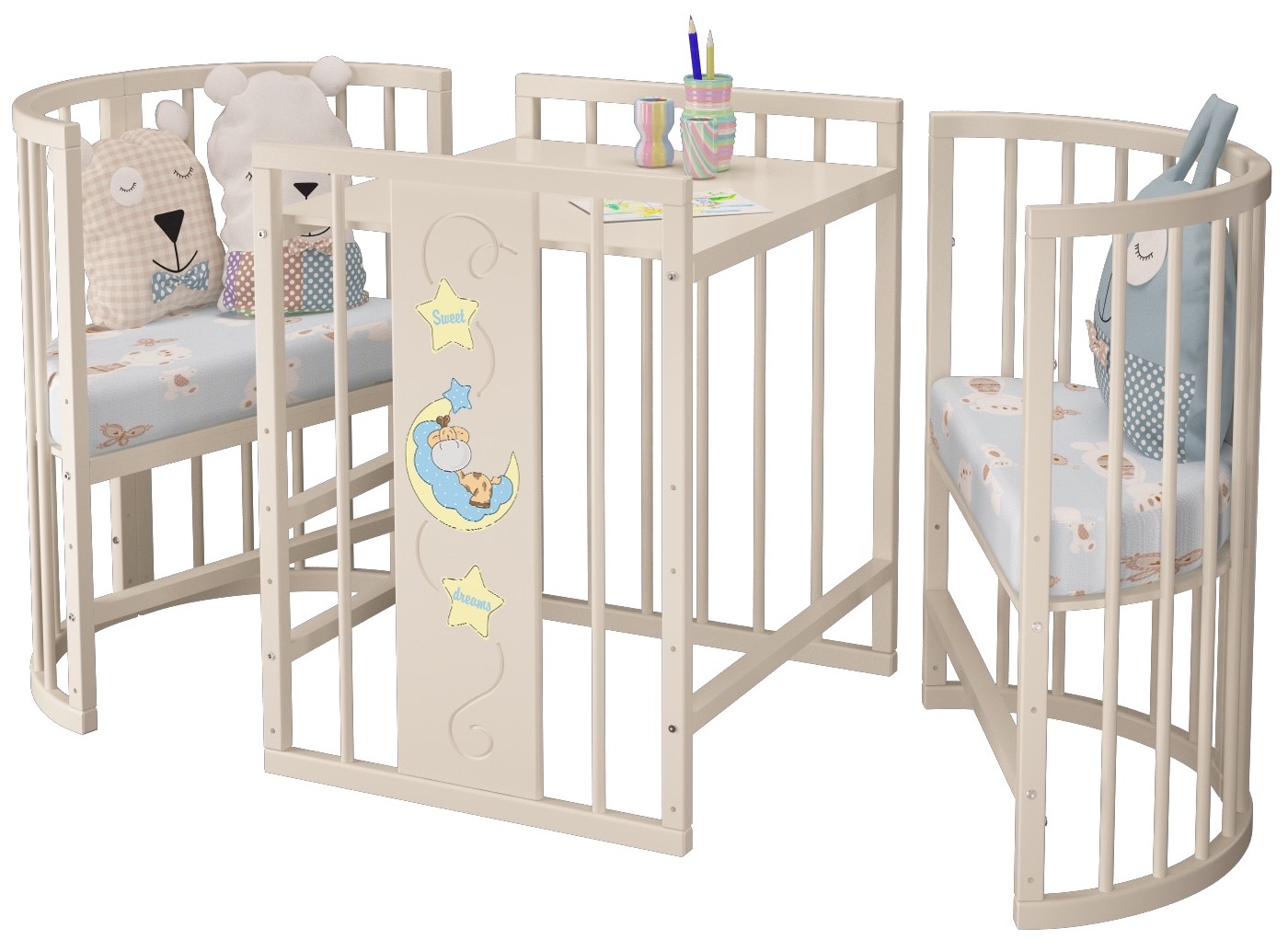 سرير دائري للأطفال مع آلية البندول وطاولة تغيير