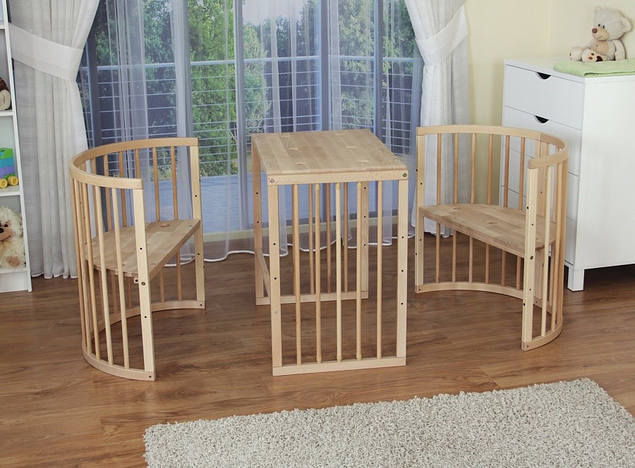 طاولة وكراسي ، يمكن الحصول عليها بسهولة من السرير المحول عندما يكبر الطفل