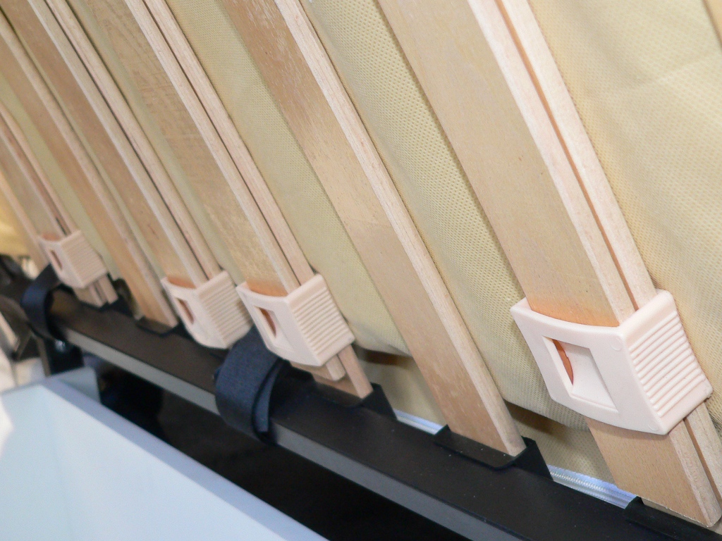 هيكل السرير مع الألواح مقسم إلى ألواح منفصلة ، وهي متينة للغاية ويمكن لكل منها تحمل وزن يصل إلى 40 كجم. في كثير من الأحيان تستخدم الشرائح لأسرة العظام.