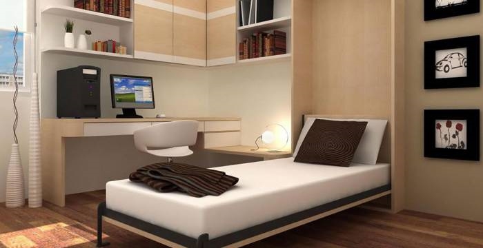 أو يمكن أن يختبئ السرير في الخزانة ، مما يوفر مساحة.