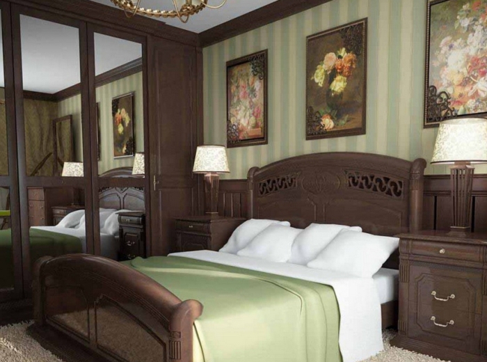 أسرة مزدوجة خشبية هي أيضا مناسبة لمحبي الداخلية الكلاسيكية.