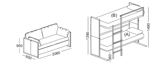 المشترين المحتملين الذين يرغبون في تحويل أريكة إلى سرير بطابقين هي المجموعات التالية.