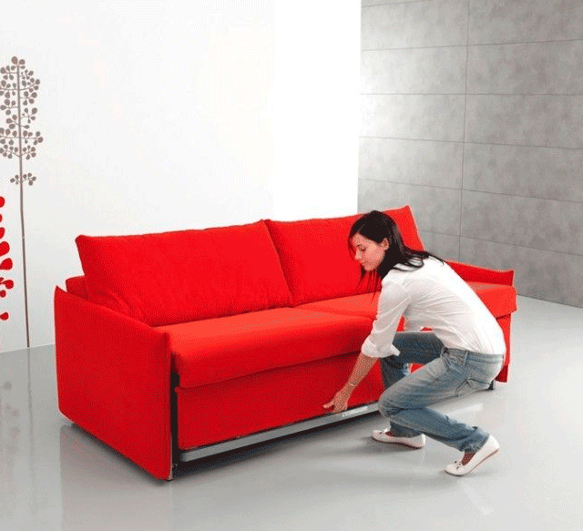 - نظرًا لأن أريكة التحويل مضغوطة ، فهي مناسبة لوضعها في مساحة ذات مساحة محدودة. سوف يساعد على استبدال الأريكة والسرير في نفس الوقت.
