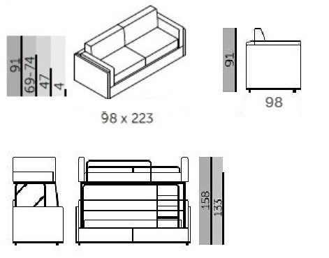 نظرًا لأن أريكة التحويل مضغوطة ، فهي مناسبة لوضعها في مساحة ذات مساحة محدودة.