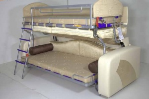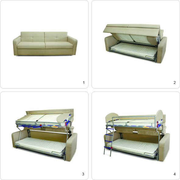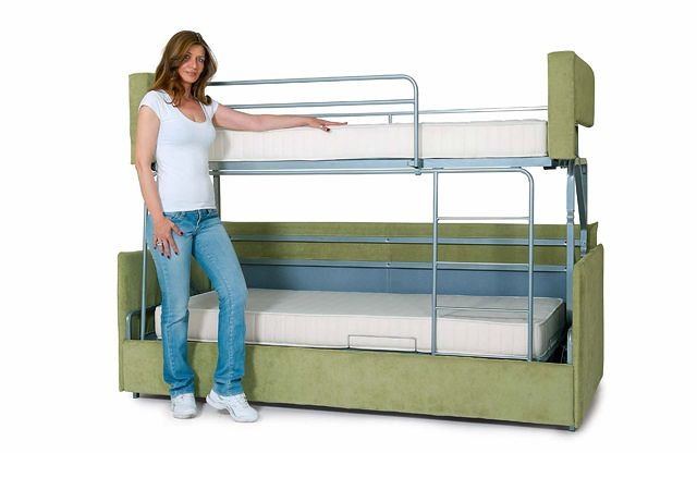 غالبًا ما تستخدم هذه الأسرّة اليوم ليس فقط لغرف الأطفال ، ولكن أيضًا كمفروشات في شقق بغرفة نوم واحدة. وبالتالي ، يمكن لمالكي هذه المساكن تجهيز غرفة النوم وغرفة المعيشة وغرفة الطعام في وقت واحد. إنه بلا شك وظيفي ، لذلك هذا الأثاث مشهور جدًا ومربح ومريح. الشيء الرئيسي هو اختيار مرتبة عالية الجودة للسرير ، مما يضمن نومًا مريحًا. مثل هذا السرير غير مناسب لأولئك الذين يحبون الاستلقاء أمام التليفزيون ، حيث أنه دائم الطي والتفتت يكون متعبًا للغاية. من الأفضل استبداله بسرير قياسي.