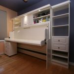 - خلال النهار ، يمكن بسهولة تحويل السرير إلى خزانة ، لكن في الليل يصبح مكانًا كاملاً للنوم. قد يحتوي المنتج على مصاريع خشبية أو زجاجية ، ومرايا.