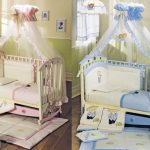بالنسبة لغرفة الطفلة ، يمكنك إنشاء تصميم داخلي رائع وتحويل السرير إلى عربة أميرة. إضافة مظلة شفافة ، وتحديد ذلك على السقف.