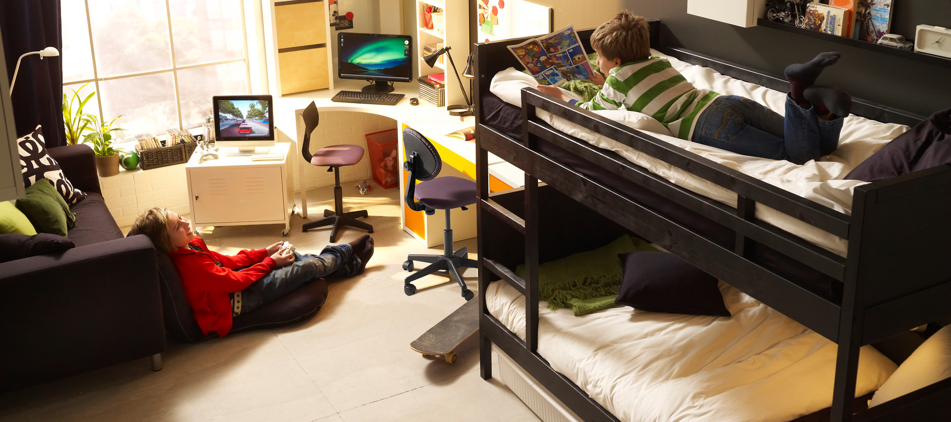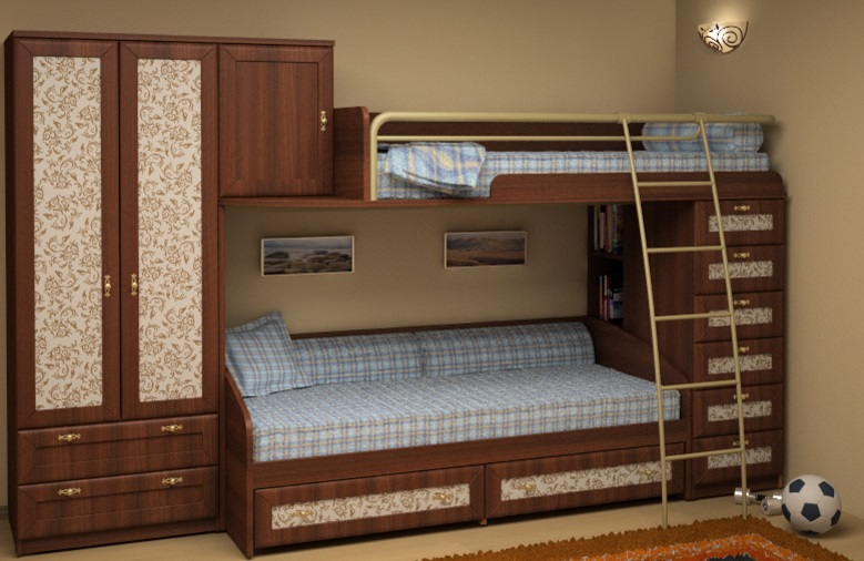 سرير بطابقين للشباب. إيجابيات وسلبيات