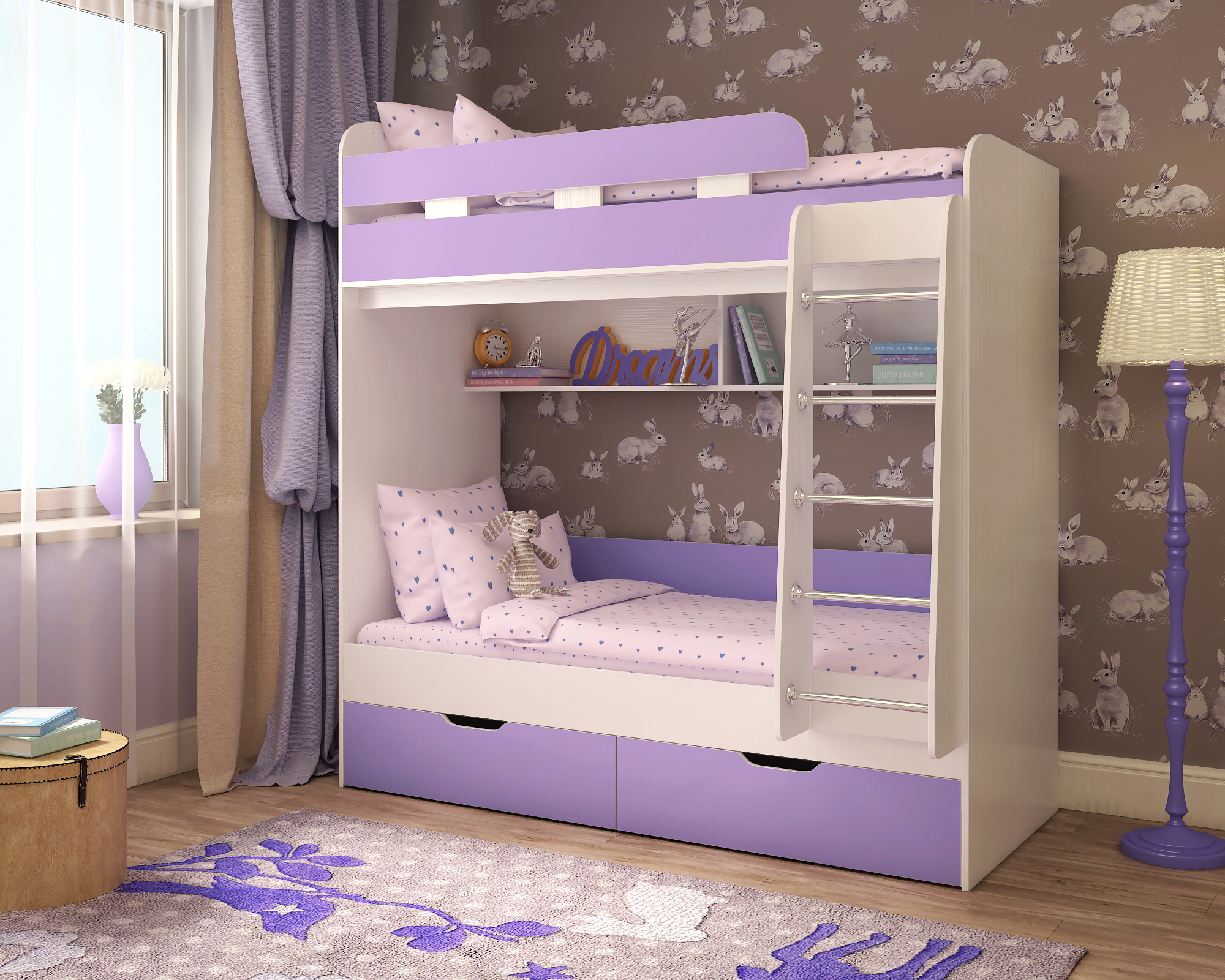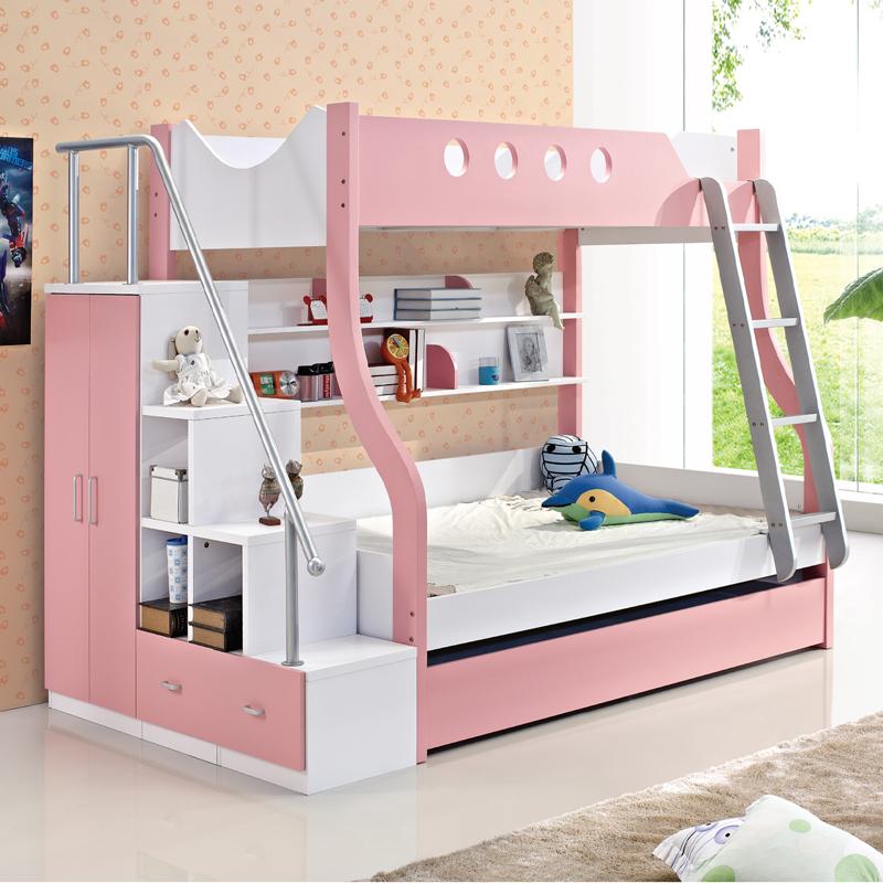 سرير مريح وآمن لطفلين مع سلالم مائلة ورفوف وأدراج