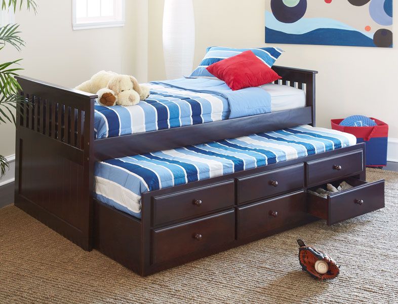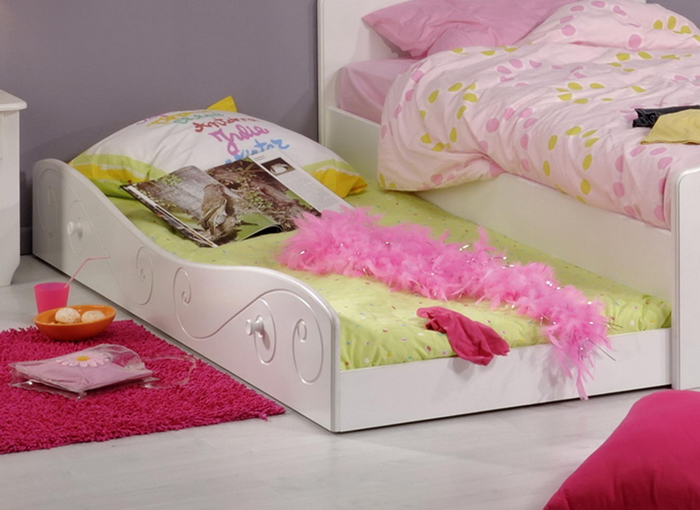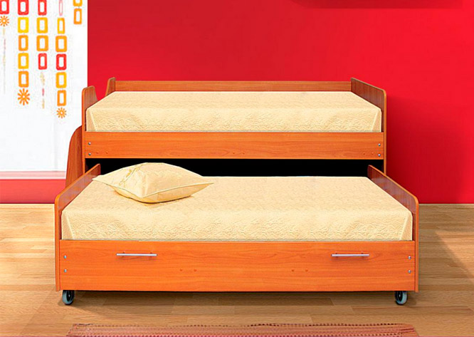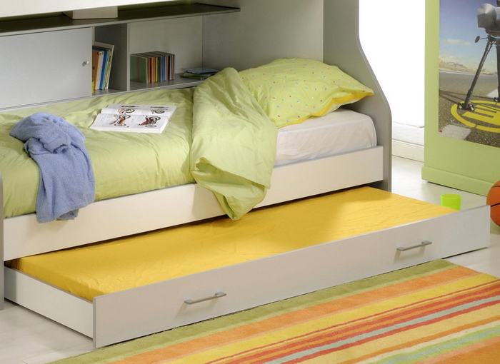السرير القابل للسحب هو مكان للنوم لطفلين.