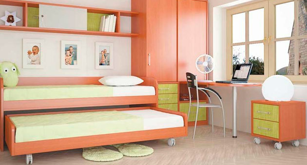 الأسرة القابلة للطي لطفلين تخضع لحمل أعلى من غيرها من الأثاث. تعد التصميمات الخشبية أو مجتمعة ، أي أن السرير نفسه خشبي ، والأرفف أو خزانة الأدراج مصنوعة من اللوح.