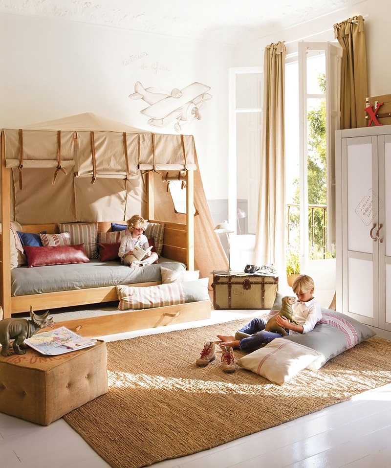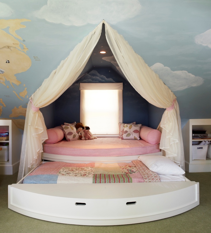 فجأة ، تبدو الغرفة التي تحتوي على سرير على الطراز الريفي أو سرير قابل للطي في شكل سيارة أو سفينة.