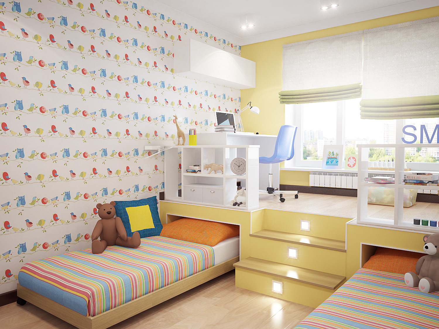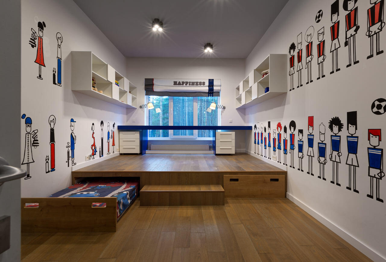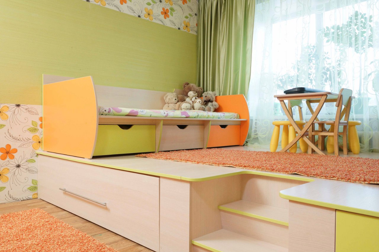يمكن للمنصة أن تجمع بين العديد من المناطق الوظيفية في وقت واحد: النوم ، غرفة المعيشة ، العمل أو الدراسة ، إلخ. الأدراج المدمجة ، الأرفف ، الرفوف تزيد من تنوع استخدام المنتج. يعد خيار الترتيب هذا مناسبًا للعائلات التي يشارك فيها العديد من الأطفال غرفة في وقت واحد. بالنسبة لشقق الاستوديو ، والتي تعد اليوم واحدة من أكثر أنواع المساكن مبيعًا في المدن الكبيرة ، سيتيح لك هذا الحل تنظيم المساحة بذكاء.