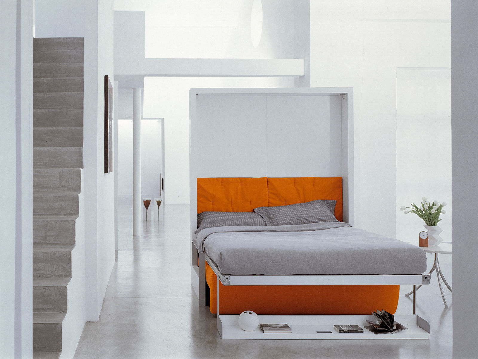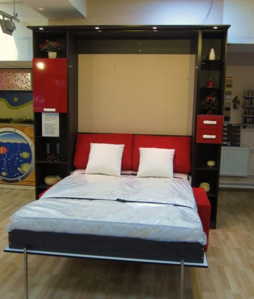 الأسرة مصنوعة من أي حجم ومطوية عموديا.