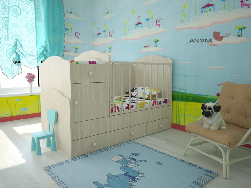 ميزة لا يمكن إنكارها من هذا الموضوع من الأثاث هو تفرده: أحجام سرير الأطفال "تنمو" مع كطفل.
