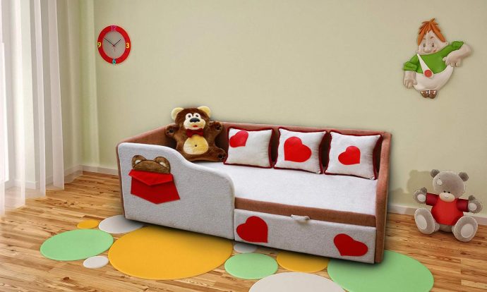 هذا يمكن أن ينظر إليه بسهولة إذا نظرتم صور عبر الإنترنت أو ذات الصلة صور في الكتالوجات أثاث الأطفال. تصميم كل هذا سرير متطابقة: يتم تعيين الدور المركزي مكان النوم، يتم إضافة مصدات من 3 إلى 4 جوانب بها ملصقات ساطعة وجذابة.