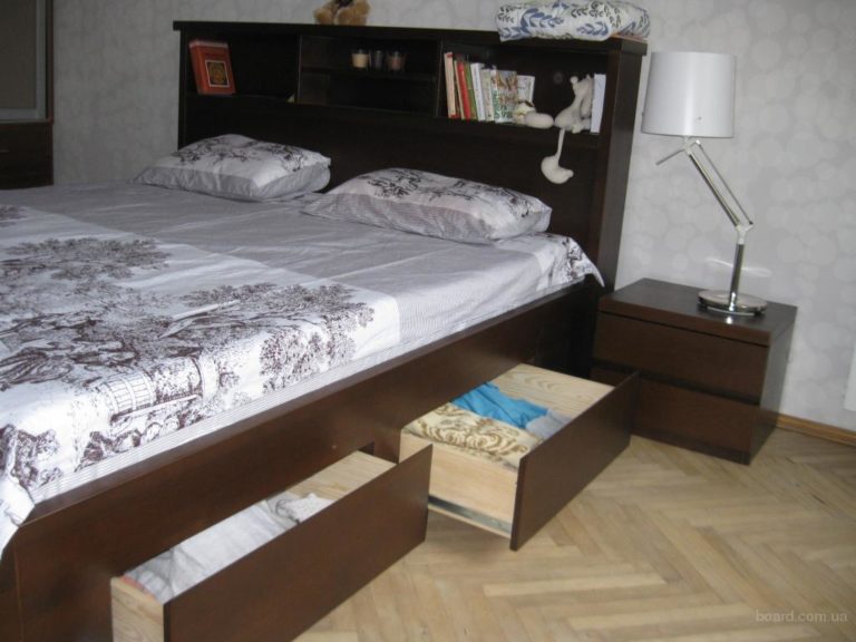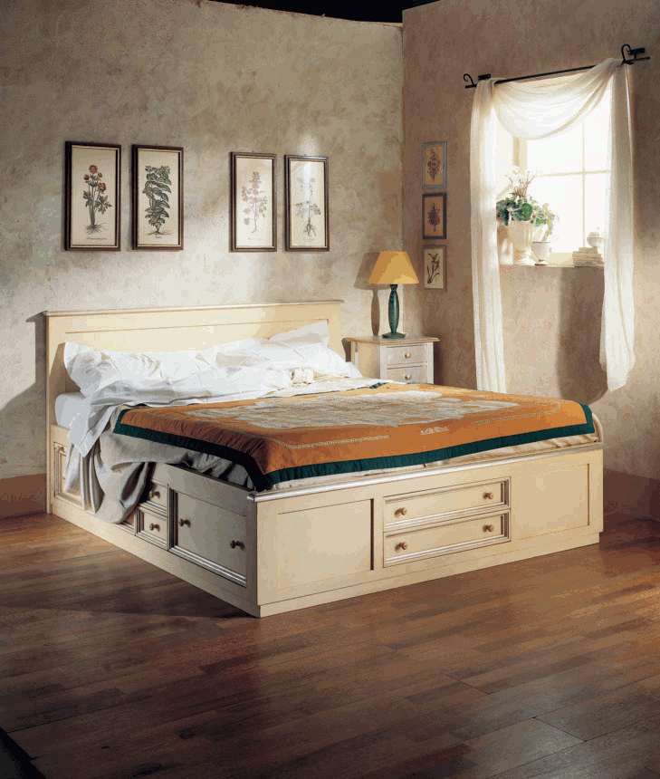 من المريح تخزين ليس فقط البياضات في المنافذ الموجودة أسفل السرير ، ولكن أيضًا قراءة الكتب المفضلة قبل وقت النوم.