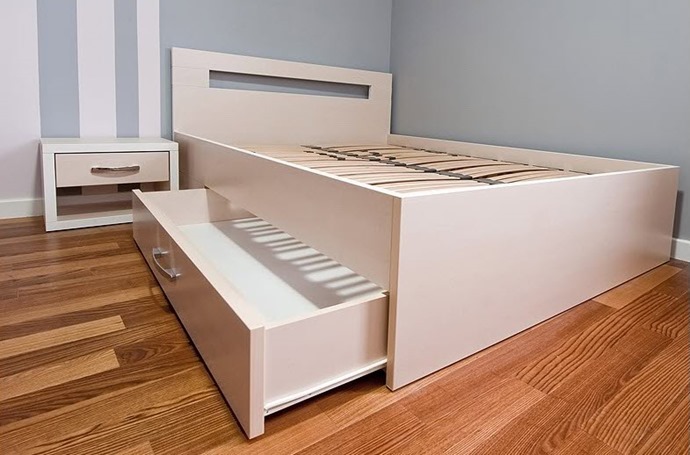الأسرة ذات الأدراج مريحة للغاية للغرف التي يكون فيها كل سنتيمتر من المساحة ذا قيمة كبيرة.