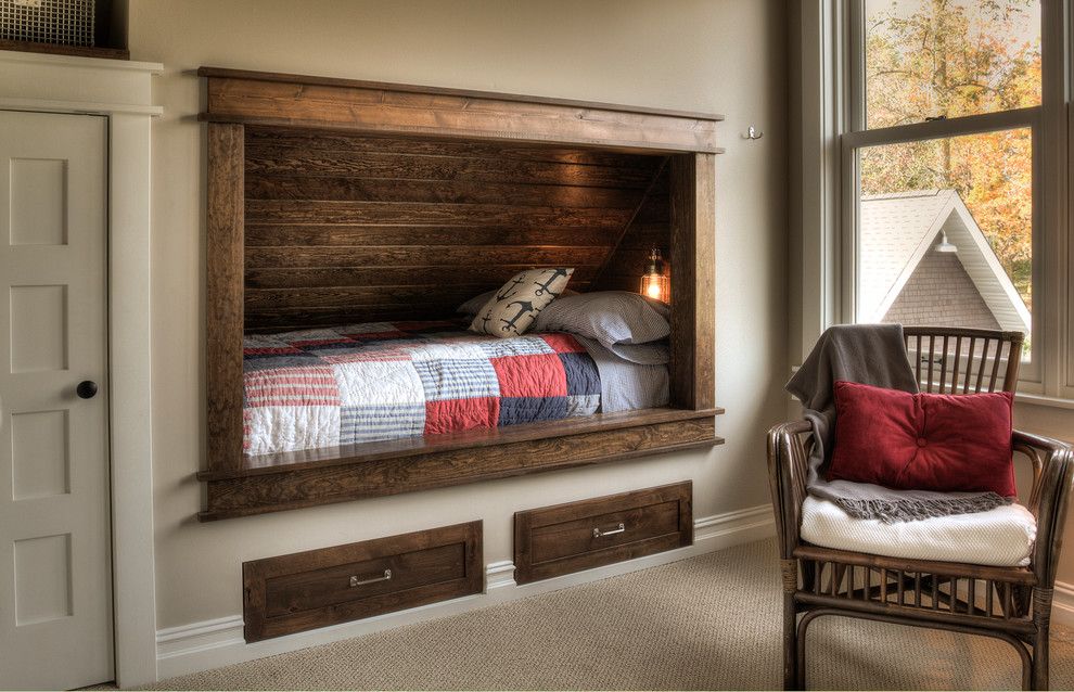 50 فكرة لاستخدام الأسرة مع الأدراج في المناطق الداخلية من الغرفة: