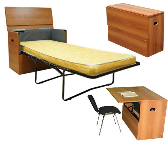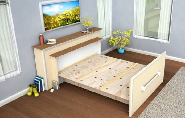السرير المتحول ، الذي يسمح لك بتوفير مساحة في الشقة ، مناسب للغاية وضروري.