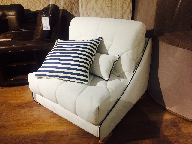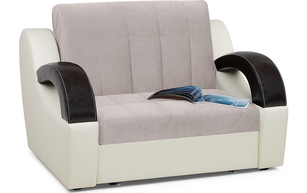 المظهر الكلاسيكي لسرير الكرسي القابل للطي. على عكس النموذجين الآخرين ، هناك مساند للذراعين. الجزء الميكانيكي للهيكل مخفي. بسبب نوع التحوّل ، هناك طيّتان عرضيتان على السرير. بشكل افتراضي ، يتم تضمين مرتبة صلابة متوسطة. |