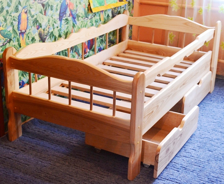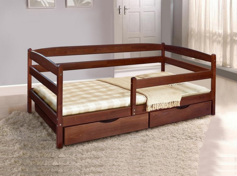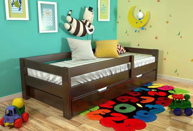 من أجل عدم سقوط الطفل من السرير ، يوصى باختيار الأثاث ذو الجوانب الصغيرة.