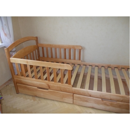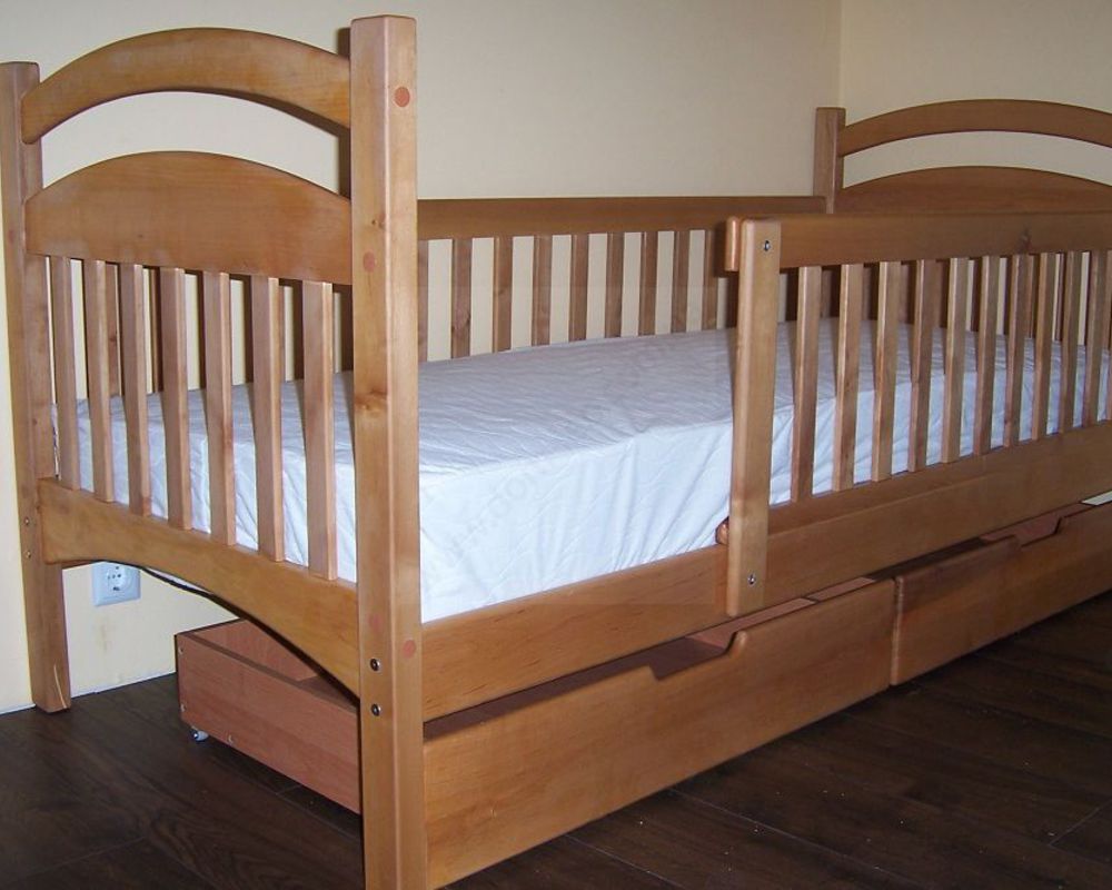 الإصدار مع الحواجز الخشبية الصلبة جامدة هو الأفضل للعمر يصل إلى 2-3 سنوات. سيكون الطفل محميًا تمامًا بمثل هذه العقبة أثناء الليل أو الراحة النهارية.