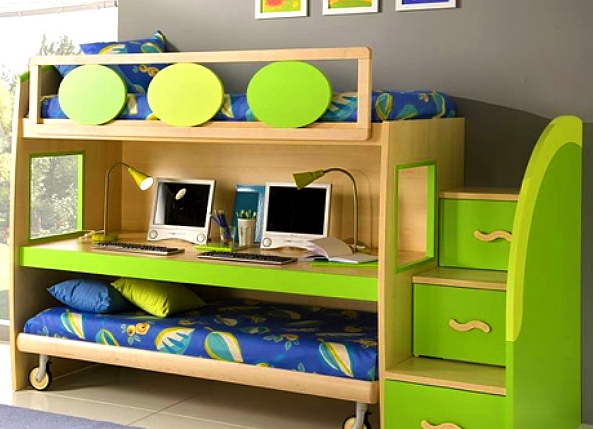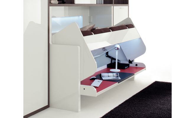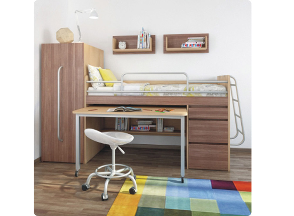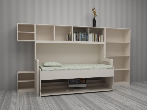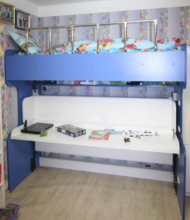إضافة إلى ذلك ، قد تحتوي إضافة سرير طاولة ، وهو محوّل لأطفال المدارس في مساحة محدودة ، على خزانة ملابس واسعة وخزانة ذات أدراج وأرفف وطاولات بجانب السرير ، مما سيخلق تركيبة واحدة. يوجد أيضًا محول للسرير ، حيث يوجد سرير إضافي ثابت أو متنقل لطفل ثانٍ.