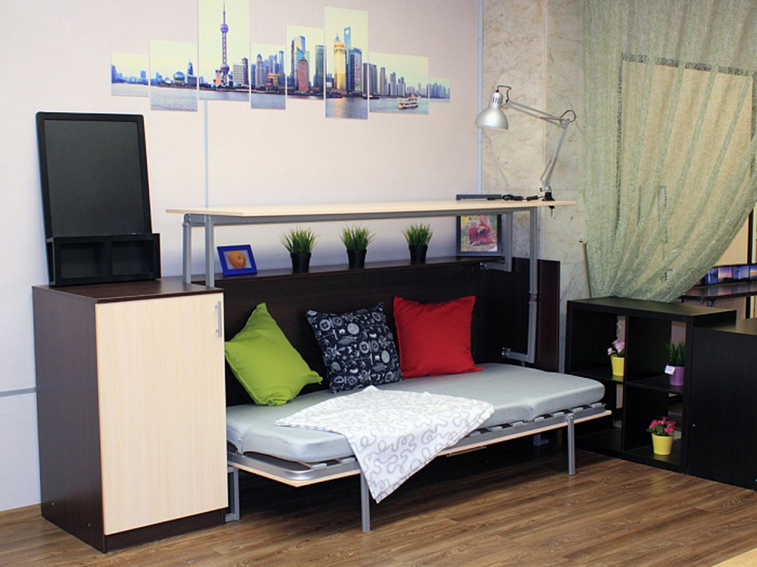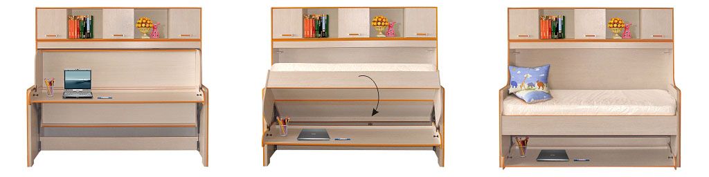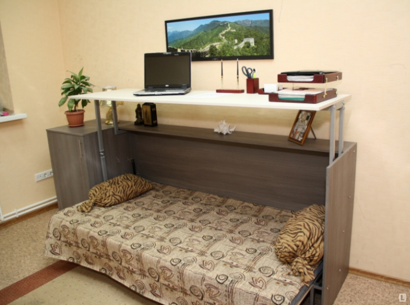 سرير الطاولة هو منتج جيد يسمح لك بإدراك الوظيفة المشتركة للمكتب وسرير مفرد على مساحة مترين من المساحة.