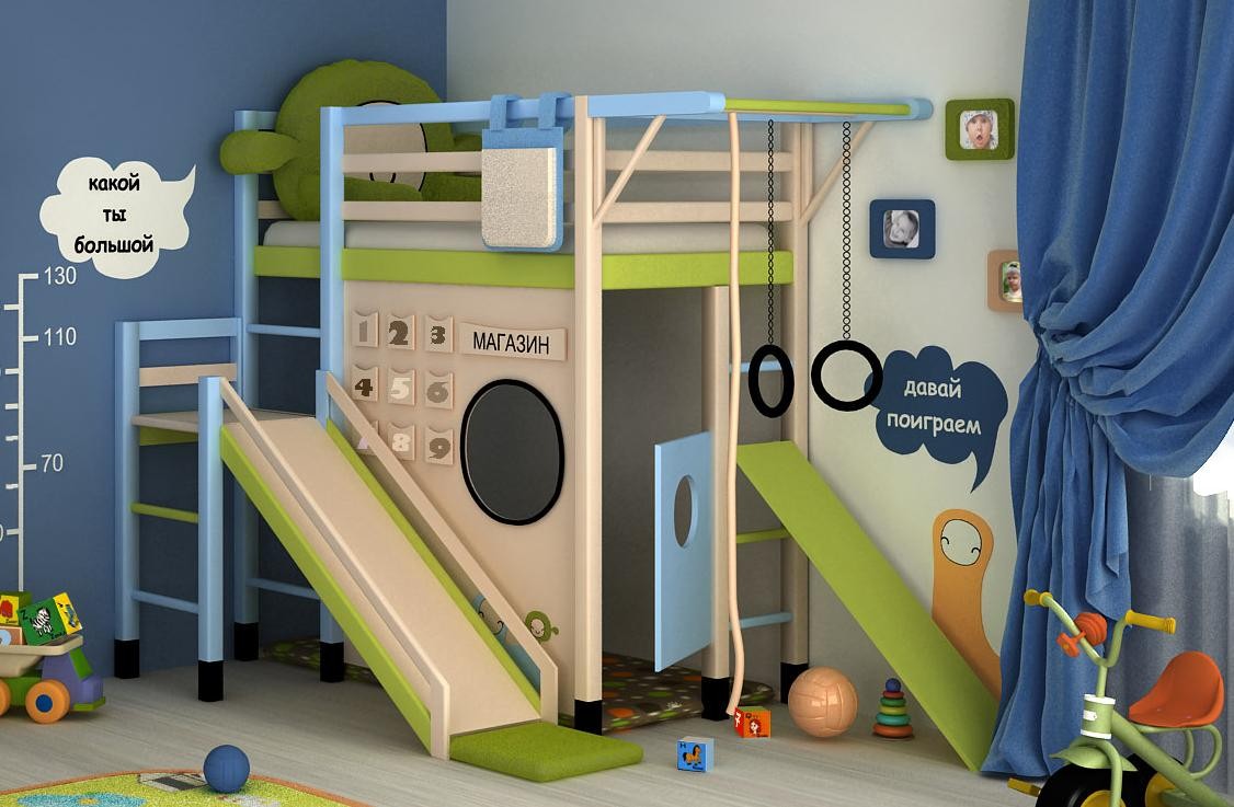 بالإضافة إلى السرير ، يمكن أن يكون هذا السرير مكانًا رائعًا للعب: توفر الشركات المصنعة العديد من تكويناتها.