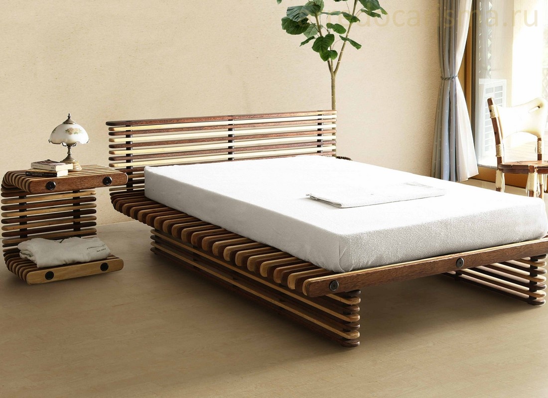 أسرة خشبية من كتلة شجرة. الصور والتوصيات.