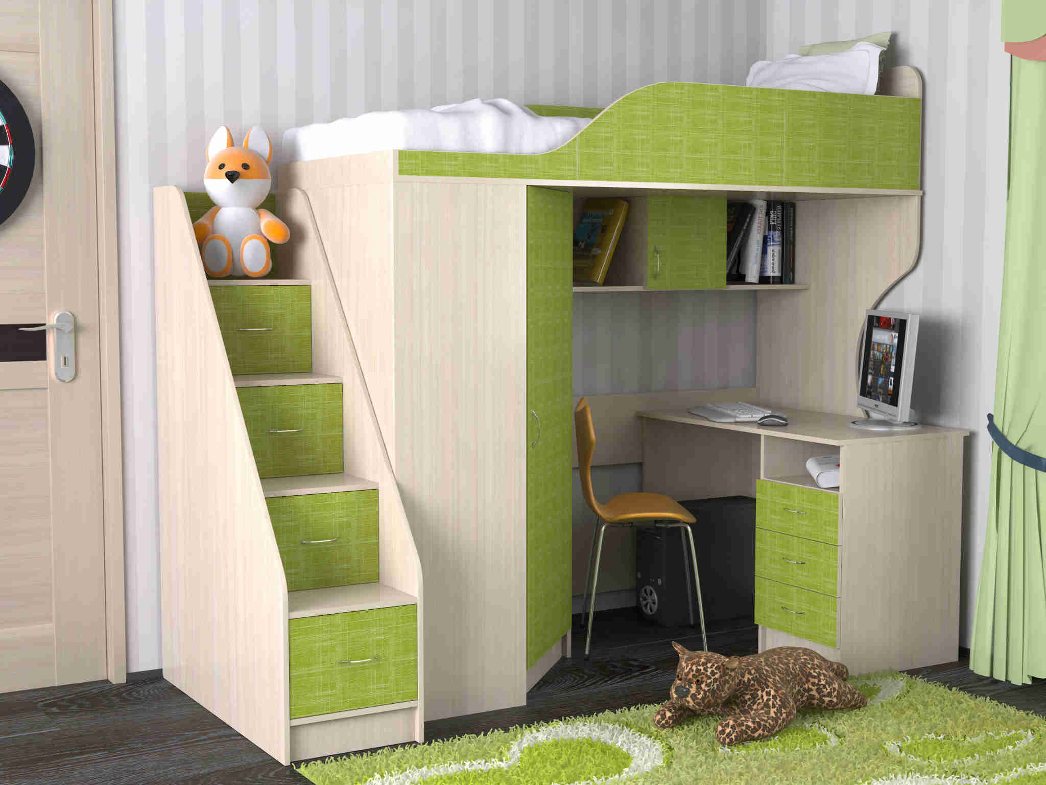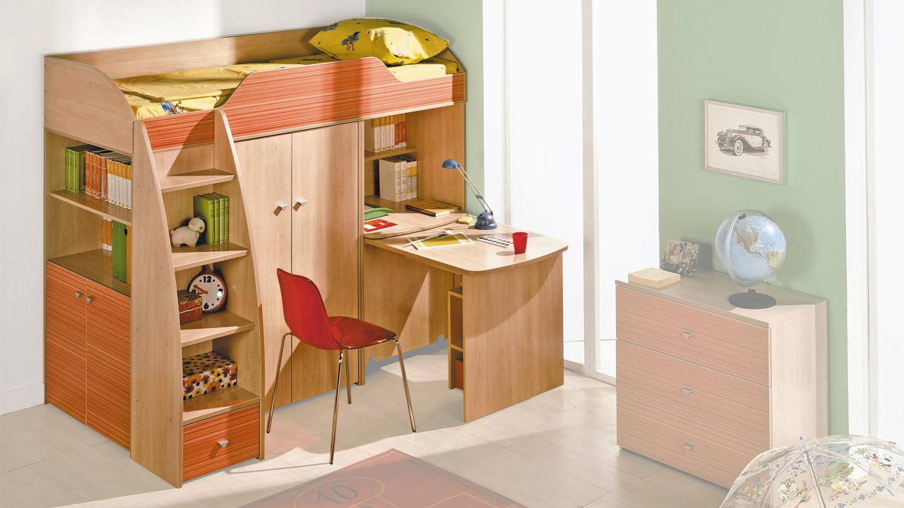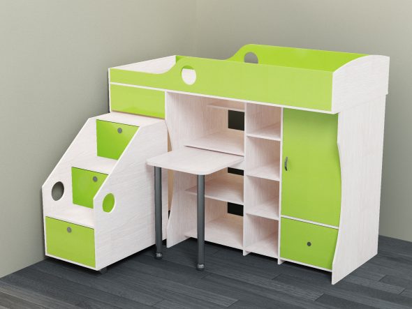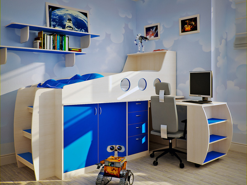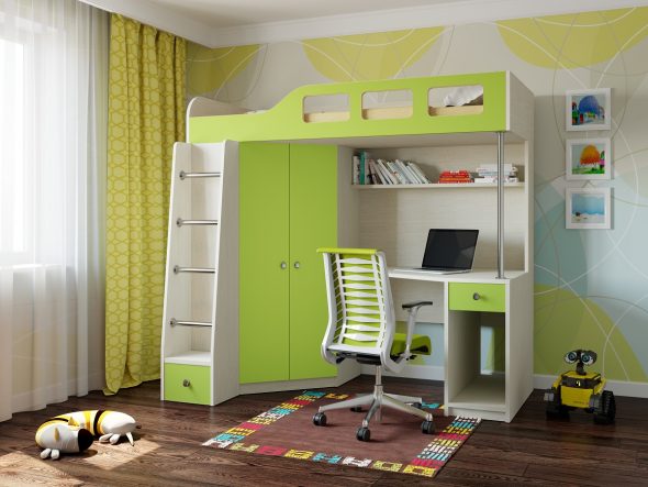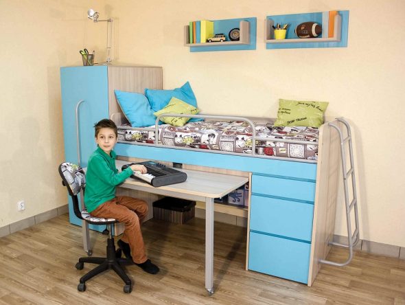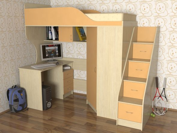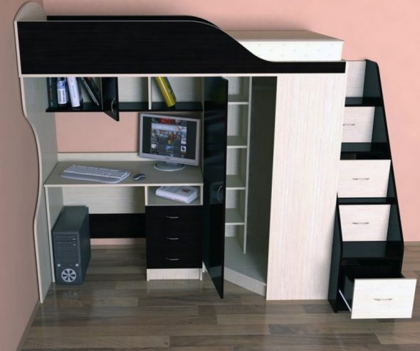 الكمبيوتر أو مكتب — جزء مهم من أي طفل أو غرفة في سن المراهقة. في كثير من الأحيان لا يوجد مكان لطاولة. حديث سرير علوي مع طاولة سيكون مساعدة جيدة في قضية الإسكان. يمكن أن العديد من أنواع التصاميم الخلط بسهولة.