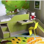 - الإضافة التالية هي التصميم الفريد للحضانة. الأشكال غير العادية ومجموعة متنوعة من الهياكل تسمح لك ببناء سرير فريد من نوعه. بالإضافة إلى ذلك ، التصميم بسيط جدًا بحيث لا يصعب تصميمه حسب احتياجاتك. يجعل تصميمها من الممكن مراعاة حجم غرفة الأطفال.