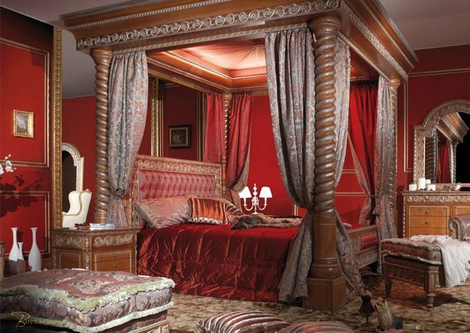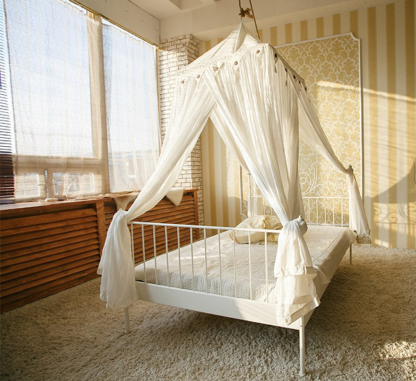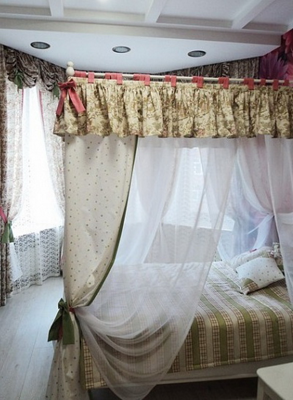 تحتوي الستائر التي تغطي السرير تمامًا على عمود ممدود خاص به المثبتات. هذه المظلة مناسبة لعشاق العزلة.تبدو المظلة الطويلة جميلة جدًا ولكنها غير عملية. يتم الخلط بين القماش باستمرار ويتداخل ، ويتم اختيار الطول القصير فقط للزركشة المزخرفة.