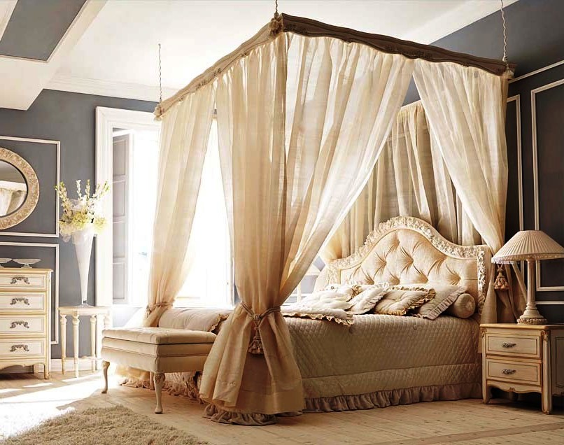 إذا كانت غرفة النوم كبيرة مع سقوف عالية ، فإن قبة المظلة ستبدو جيدة.