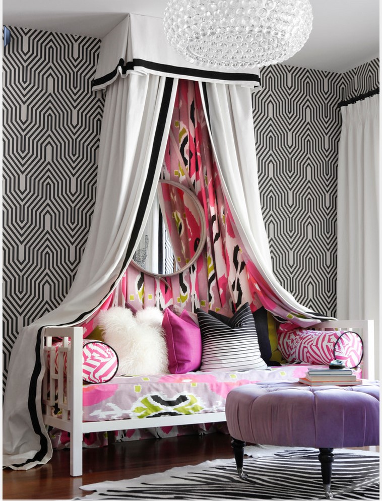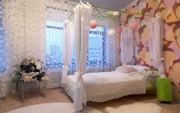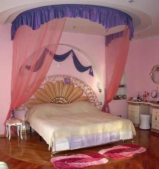 عادة مثل هذه الستائر مثل الفتيات. انهم يشعرون مثل الأميرات الحقيقية. يجب الجمع بين المظلة فوق السرير للفتاة في أسلوب الداخلية ، لتناسب أذواق الطفل. لا يزال ، هذا نوع خاص من الزخارف ، لن يبدو إذا كنت لا تأخذ في الاعتبار التصميم العام للغرفة.