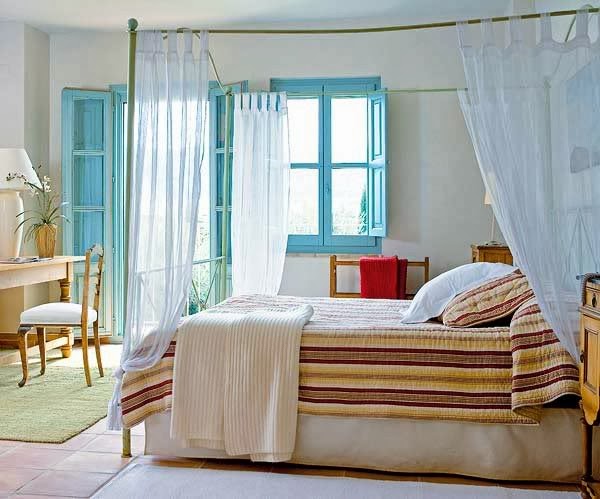 - في فصل الصيف ، بالإضافة إلى الجمال الذي تخلقه الستائر فوق السرير في داخل غرفة النوم ، فإنها توفر الحماية من البعوض.
