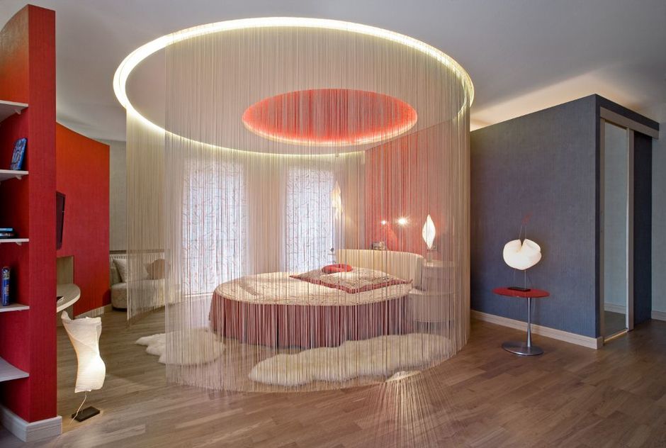 - مظلة مصنوعة من مادة كثيفة تمنع اختراق الضوء الزائد وحتى الضوضاء. قد تكون هناك حاجة إلى مثل هذه الحماية في شقة استوديو صغيرة ، حيث تستوعب غرفة واحدة مناطق مختلفة من الاستخدام.