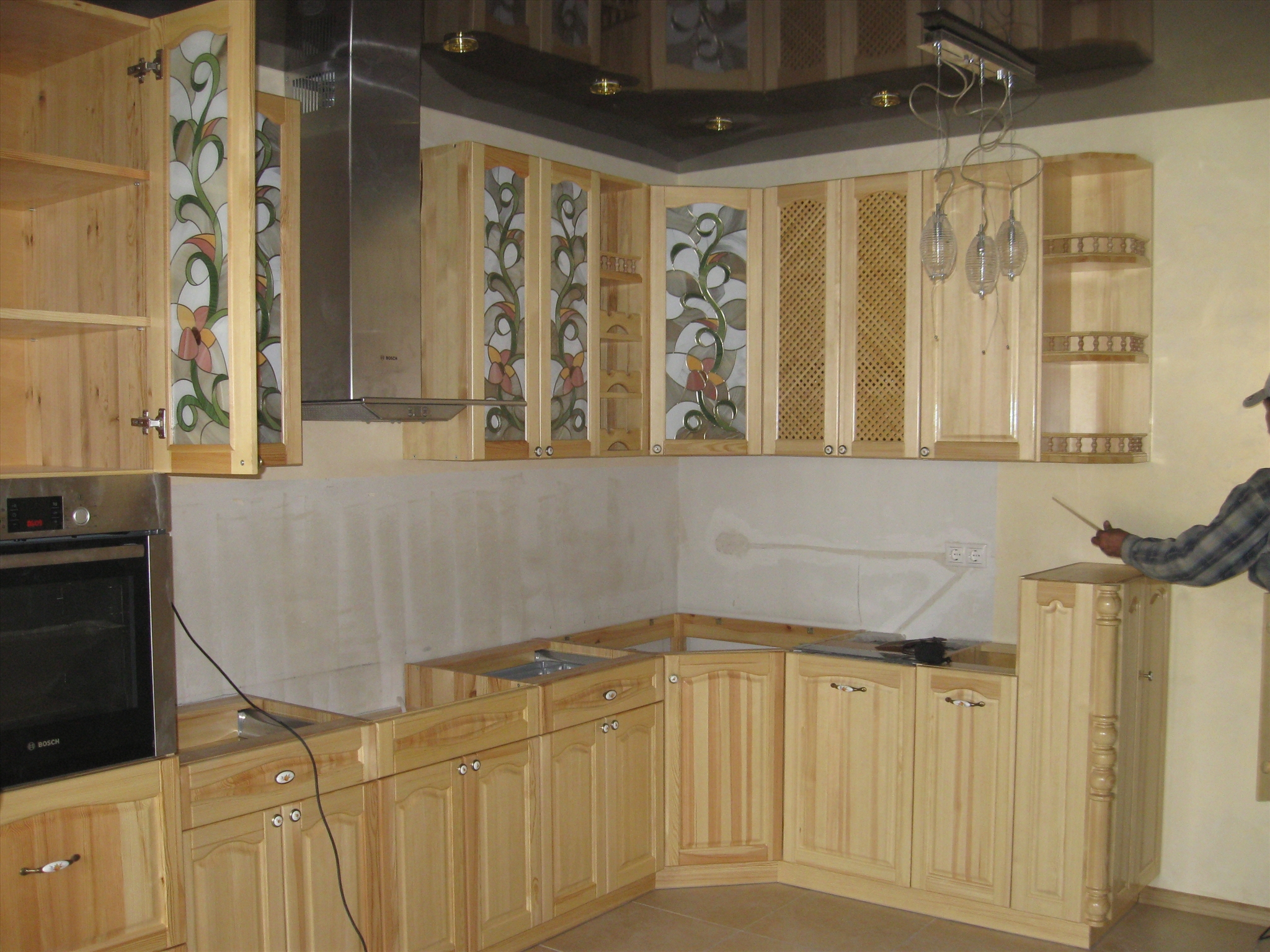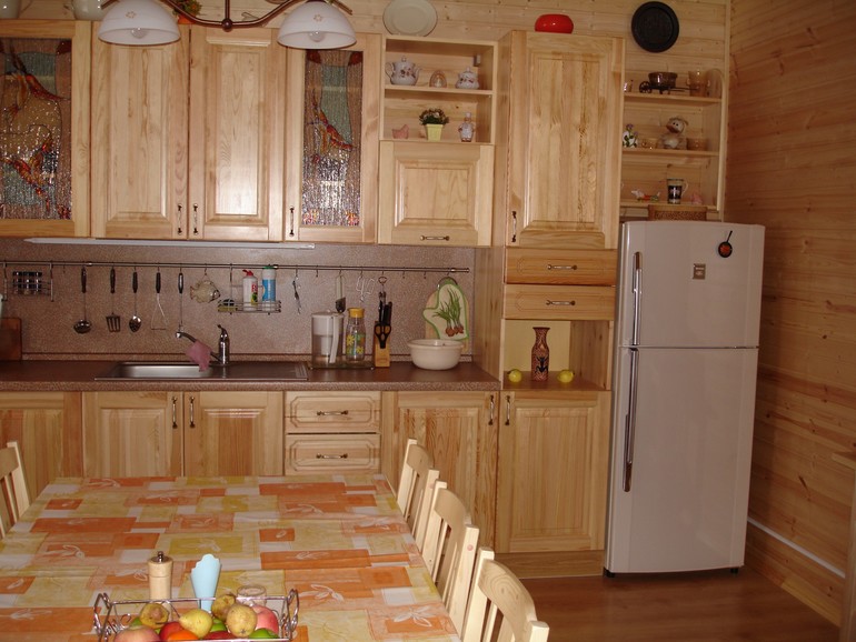 - 7 فيديو: المطبخ بأيديهم. الخشب الصلب. (الصنوبر) المطبخ من لوحة الأثاث. خزائن المطبخ الجزء رقم 1